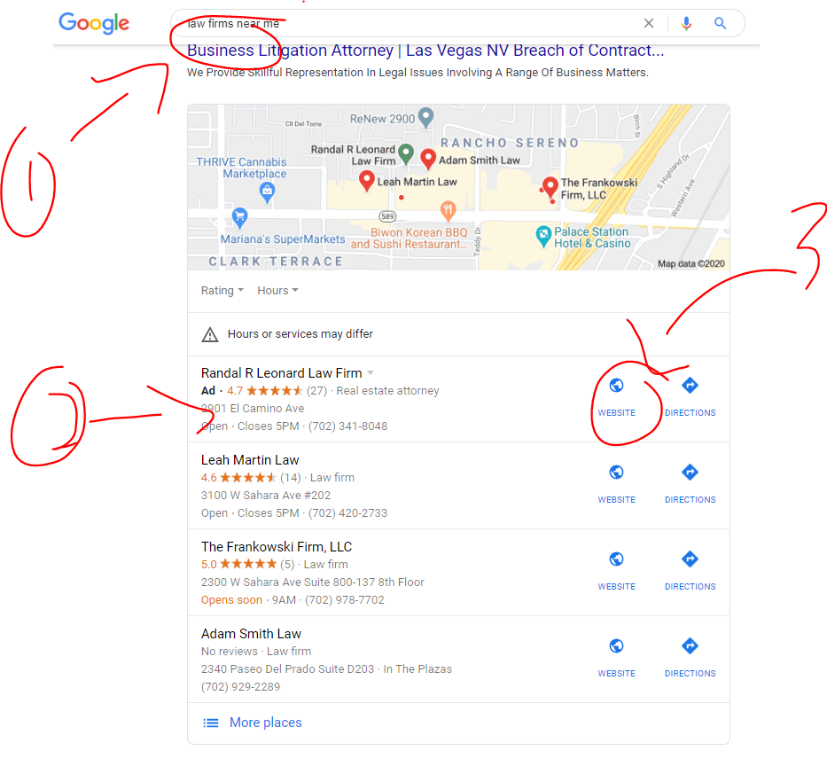 Here’s an example of a Google Search for “Law Firms near Me”: