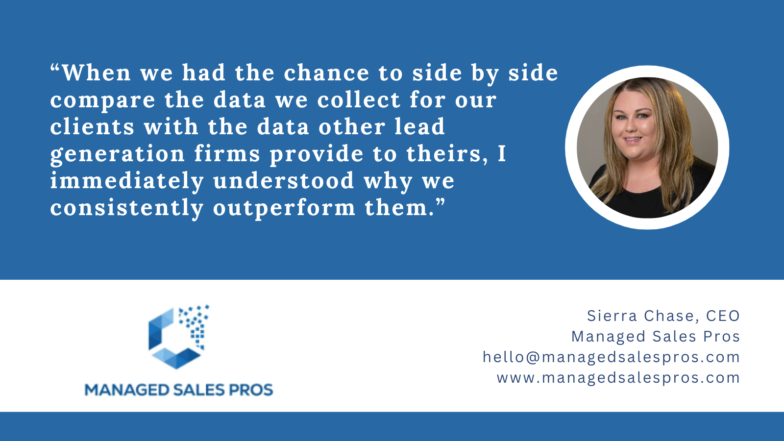 By leveraging the comprehensive data we collect, our clients can not only enhance their lead generation efforts but also significantly improve the quality of sales appointments. Managed Sales Pros is a testament to the power of a data-driven approach, our own data collection efforts have been honed over ten years using a team of experienced agents – we’ve built what’s probably the most valuable database of MSPs and VARs in the US, and it’s the reason so many vendors chose us as their demand generation partners.